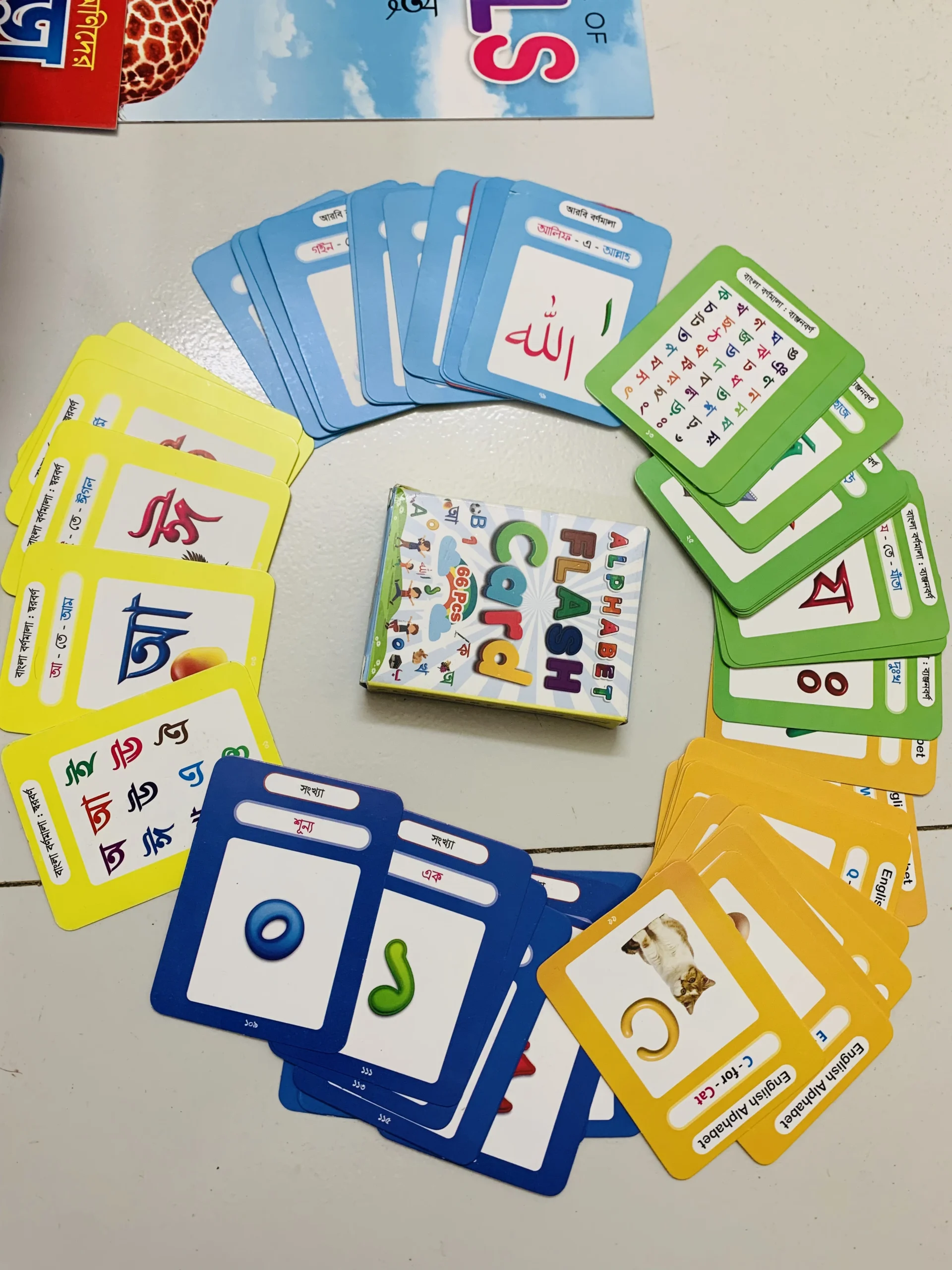 ৬৬ টা ফ্ল্যাশ কার্ড(বাংলা,ইংরেজি, আরবি,নাম্বার)।